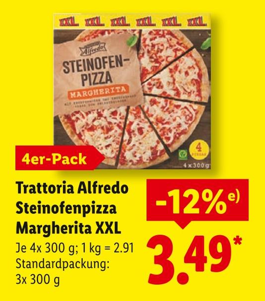 Fertigpizza nach Packungsanleitung im Ofen backen.